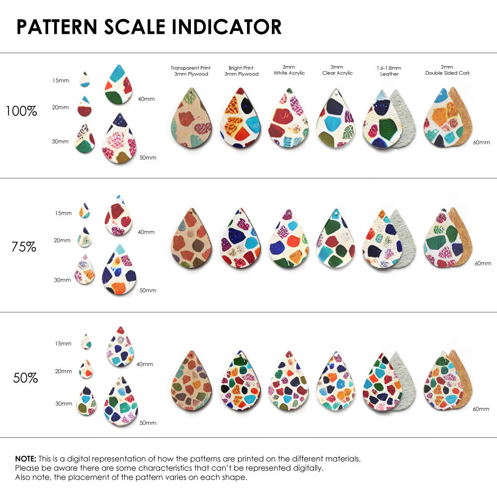 Our patterns can be printed onto Genuine Cowhide Leather, Double Sided Cork, Pine Plywood, White Acrylic or Clear Acrylic or Yupo Paper sheets or earring blanks for making your own earrings. Simply add your own embellishments and findings to make them truly your own.