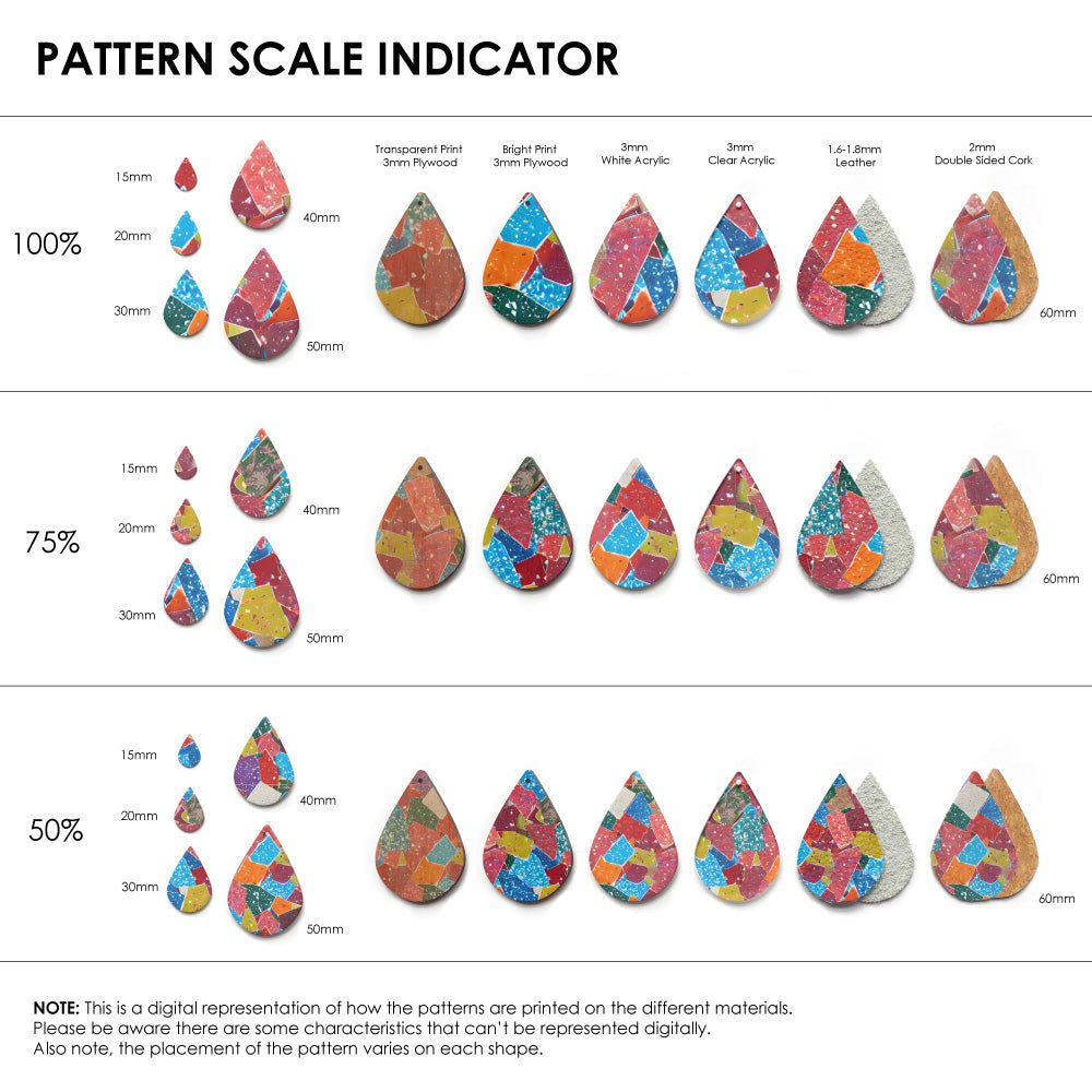 Our patterns can be printed onto Genuine Cowhide Leather, Double Sided Cork, Pine Plywood, White Acrylic or Clear Acrylic or Yupo Paper sheets or earring blanks for making your own earrings. Simply add your own embellishments and findings to make them truly your own.