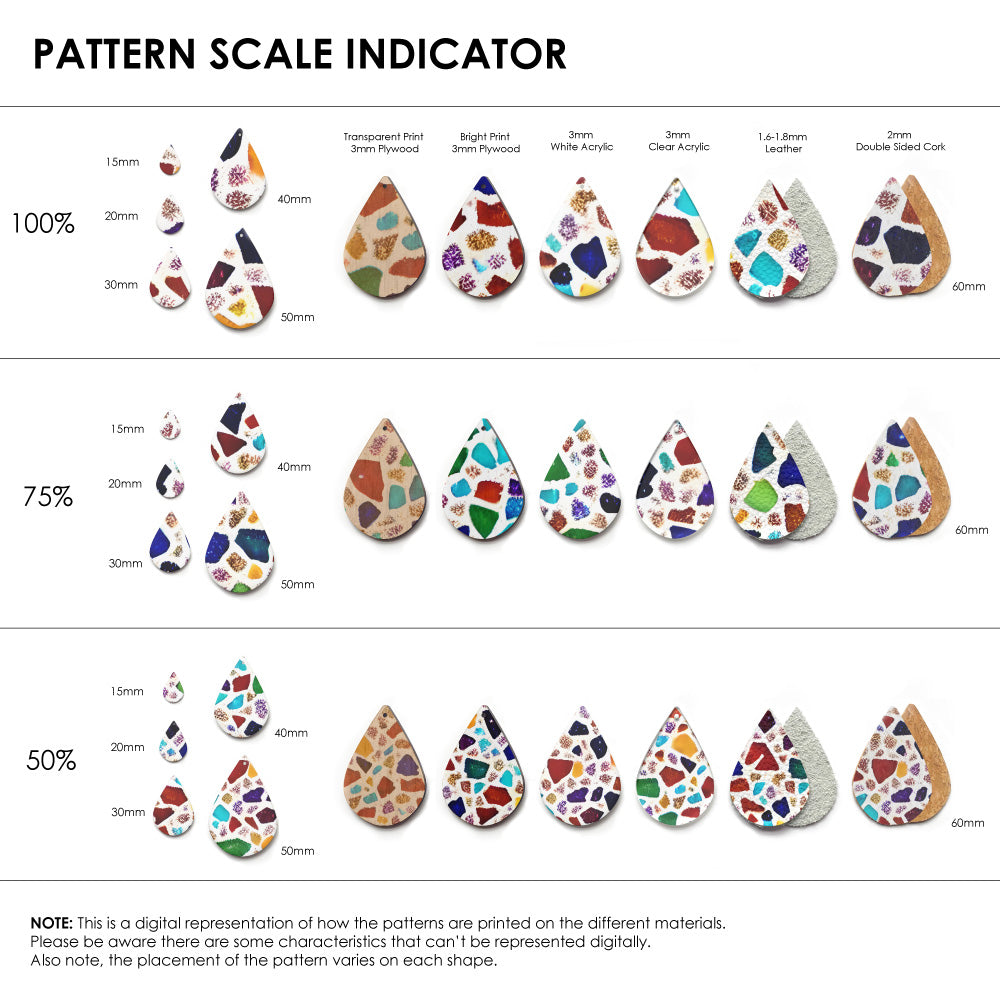 Our patterns can be printed onto Genuine Cowhide Leather, Double Sided Cork, Pine Plywood, White Acrylic or Clear Acrylic or Yupo Paper sheets or earring blanks for making your own earrings. Simply add your own embellishments and findings to make them truly your own.