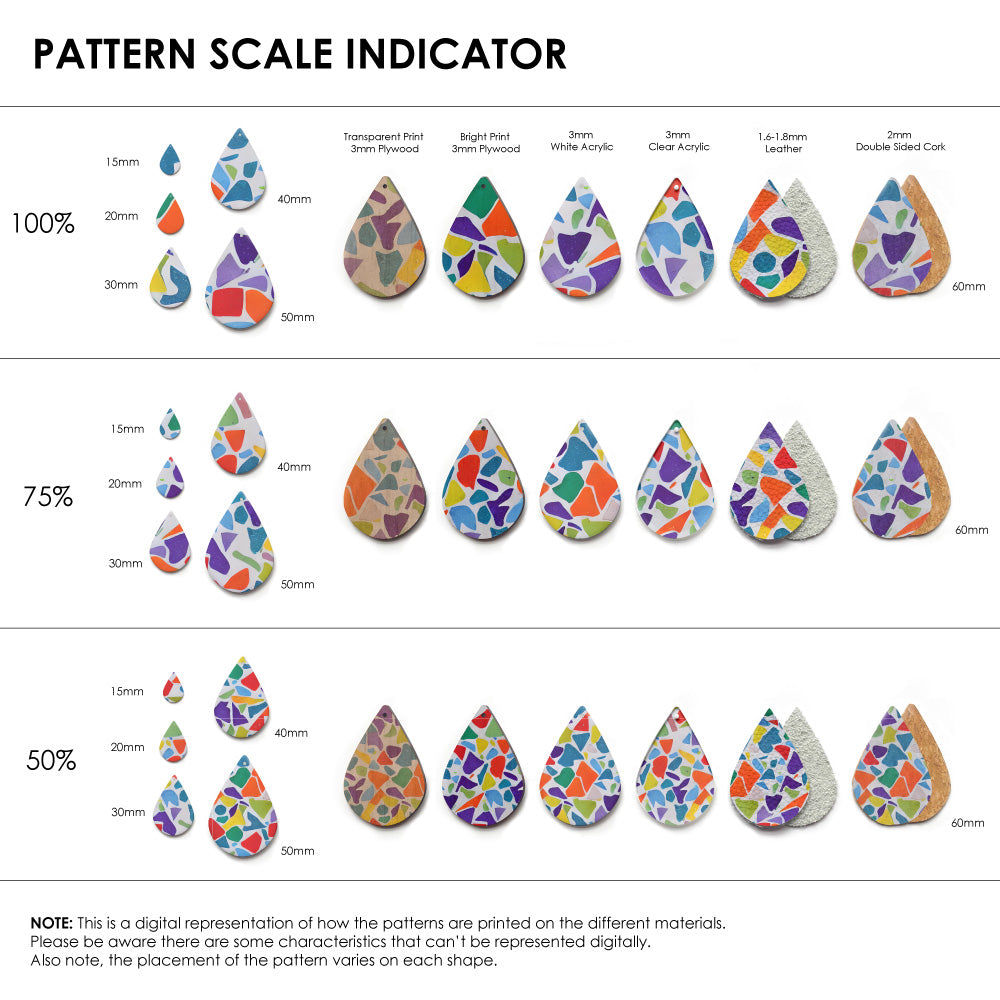 Our patterns can be printed onto Genuine Cowhide Leather, Double Sided Cork, Pine Plywood, White Acrylic or Clear Acrylic or Yupo Paper sheets or earring blanks for making your own earrings. Simply add your own embellishments and findings to make them truly your own.