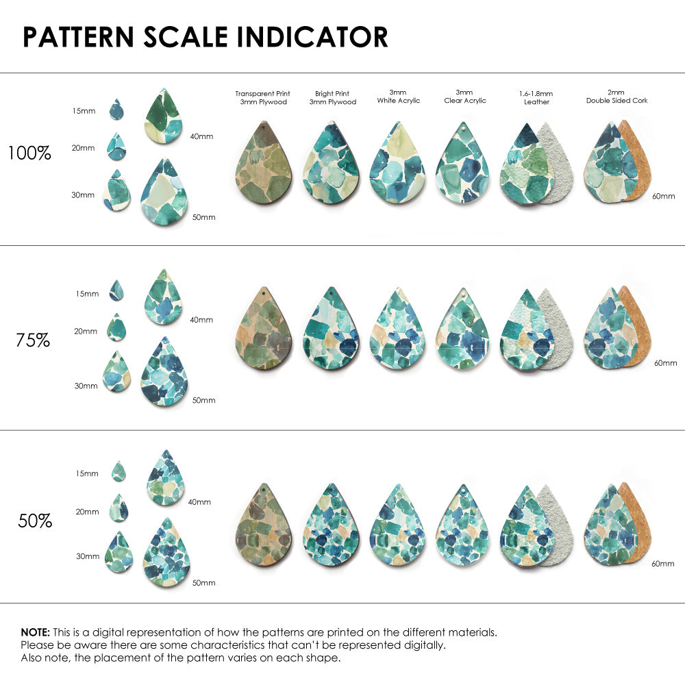 The catalogue image shown is one repeat. If the pattern is seamless, we repeat the pattern to fit to the sheet size, and then scale it so it is suitable for small pieces like earrings.