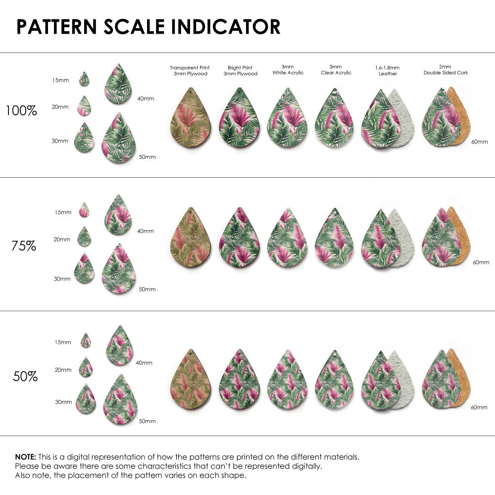 Our patterns can be printed onto Genuine Cowhide Leather, Double Sided Cork, Pine Plywood, White Acrylic or Clear Acrylic or Yupo Paper sheets or earring blanks for making your own earrings. Simply add your own embellishments and findings to make them truly your own.