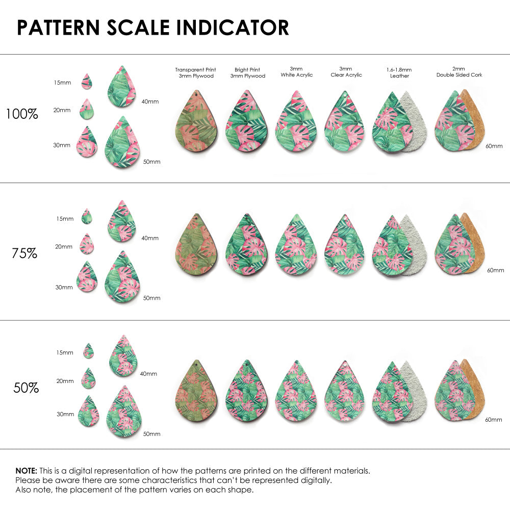Our patterns can be printed onto Genuine Cowhide Leather, Double Sided Cork, Pine Plywood, White Acrylic or Clear Acrylic or Yupo Paper sheets or earring blanks for making your own earrings. Simply add your own embellishments and findings to make them truly your own.