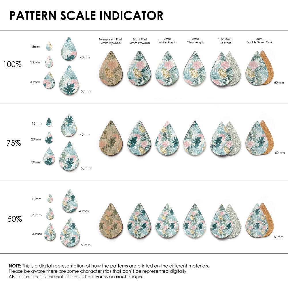 Our patterns can be printed onto Genuine Cowhide Leather, Double Sided Cork, Pine Plywood, White Acrylic or Clear Acrylic or Yupo Paper sheets or earring blanks for making your own earrings. Simply add your own embellishments and findings to make them truly your own.