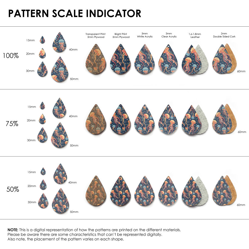 Our patterns can be printed onto Genuine Cowhide Leather, Double Sided Cork, Pine Plywood, White Acrylic or Clear Acrylic or Yupo Paper sheets or earring blanks for making your own earrings. Simply add your own embellishments and findings to make them truly your own.