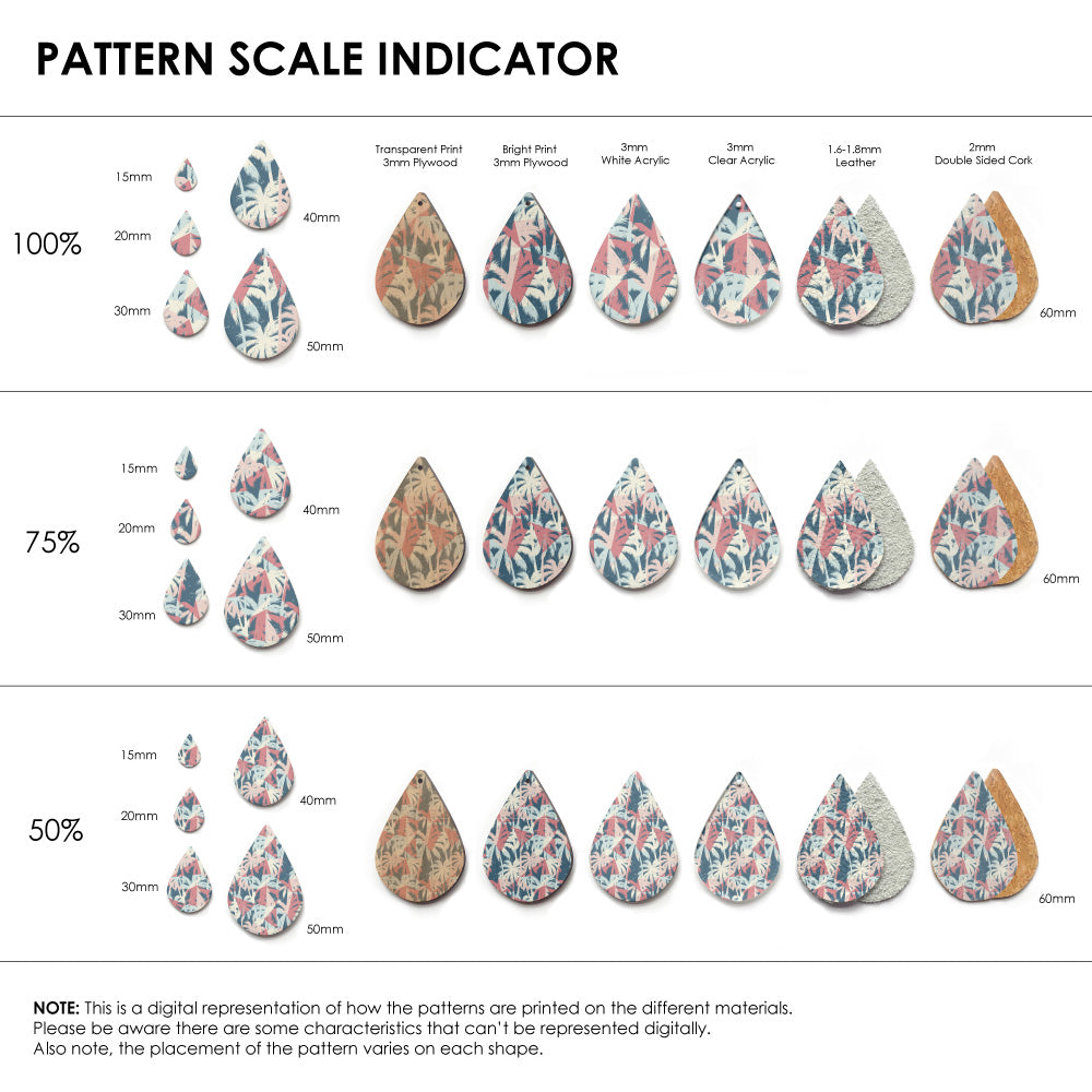 Our patterns can be printed onto Genuine Cowhide Leather, Double Sided Cork, Pine Plywood, White Acrylic or Clear Acrylic or Yupo Paper sheets or earring blanks for making your own earrings. Simply add your own embellishments and findings to make them truly your own.