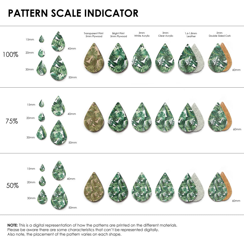 Our patterns can be printed onto Genuine Cowhide Leather, Double Sided Cork, Pine Plywood, White Acrylic or Clear Acrylic or Yupo Paper sheets or earring blanks for making your own earrings. Simply add your own embellishments and findings to make them truly your own.