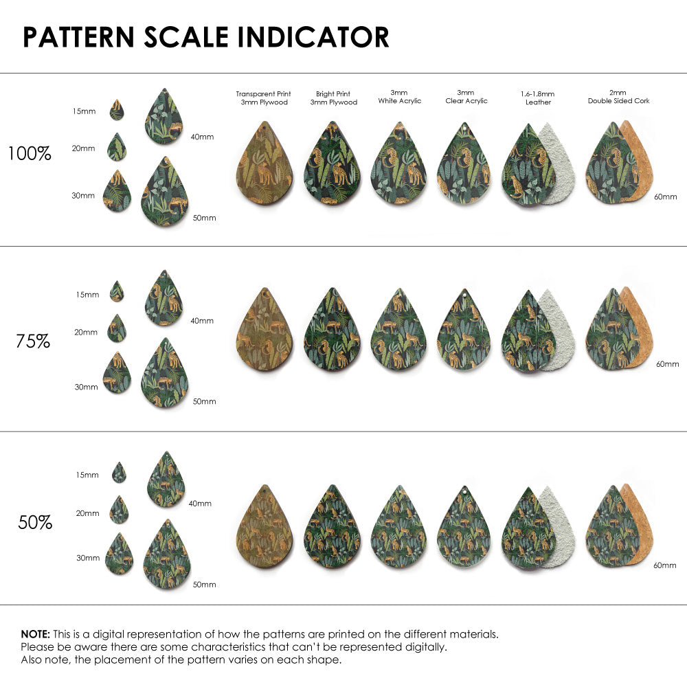 Our patterns can be printed onto Genuine Cowhide Leather, Double Sided Cork, Pine Plywood, White Acrylic or Clear Acrylic or Yupo Paper sheets or earring blanks for making your own earrings. Simply add your own embellishments and findings to make them truly your own.