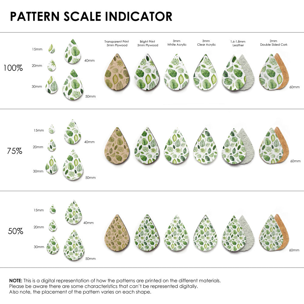 Our patterns can be printed onto Genuine Cowhide Leather, Double Sided Cork, Pine Plywood, White Acrylic or Clear Acrylic or Yupo Paper sheets or earring blanks for making your own earrings. Simply add your own embellishments and findings to make them truly your own.