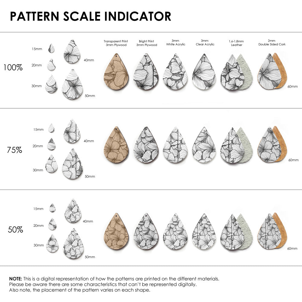 Our patterns can be printed onto Genuine Cowhide Leather, Double Sided Cork, Pine Plywood, White Acrylic or Clear Acrylic or Yupo Paper sheets or earring blanks for making your own earrings. Simply add your own embellishments and findings to make them truly your own.