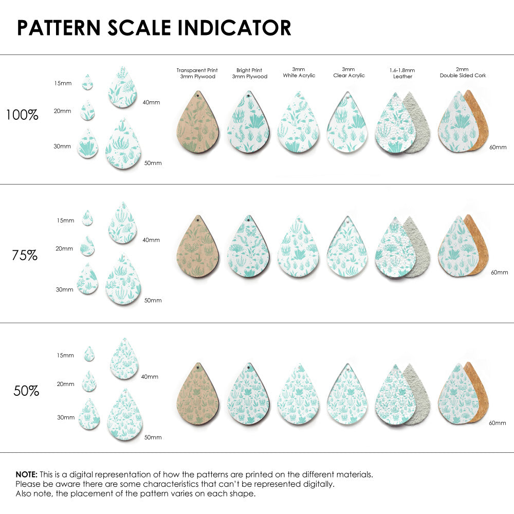 Our patterns can be printed onto Genuine Cowhide Leather, Double Sided Cork, Pine Plywood, White Acrylic or Clear Acrylic or Yupo Paper sheets or earring blanks for making your own earrings. Simply add your own embellishments and findings to make them truly your own.