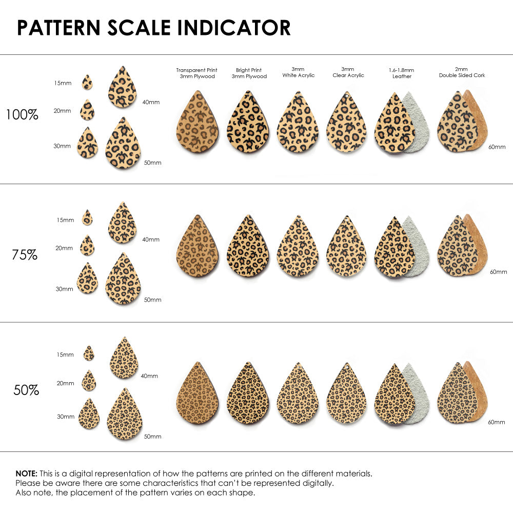 Our patterns can be printed onto Genuine Cowhide Leather, Double Sided Cork, Pine Plywood, White Acrylic or Clear Acrylic or Yupo Paper sheets or earring blanks for making your own earrings. Simply add your own embellishments and findings to make them truly your own.