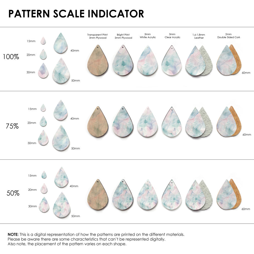 Our patterns can be printed onto Genuine Cowhide Leather, Double Sided Cork, Pine Plywood, White Acrylic or Clear Acrylic or Yupo Paper sheets or earring blanks for making your own earrings. Simply add your own embellishments and findings to make them truly your own.
