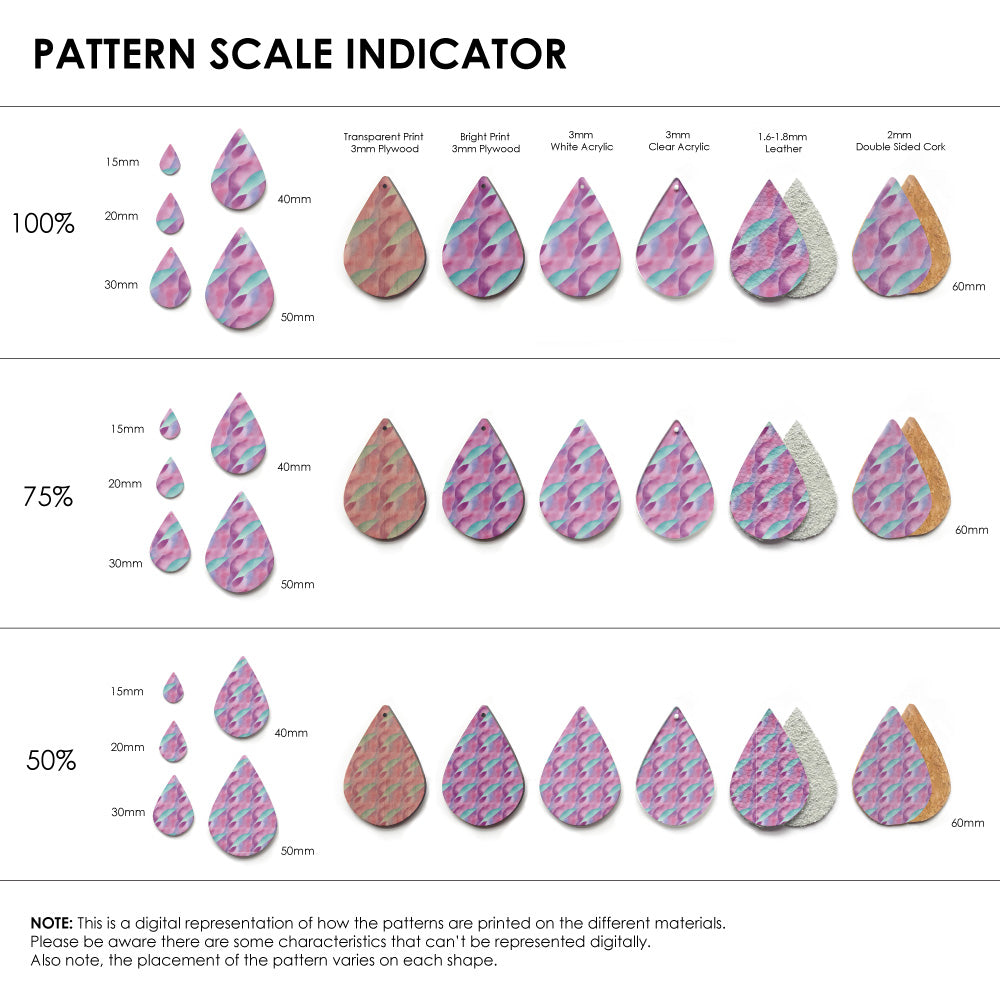 Our patterns can be printed onto Genuine Cowhide Leather, Double Sided Cork, Pine Plywood, White Acrylic or Clear Acrylic or Yupo Paper sheets or earring blanks for making your own earrings. Simply add your own embellishments and findings to make them truly your own.
