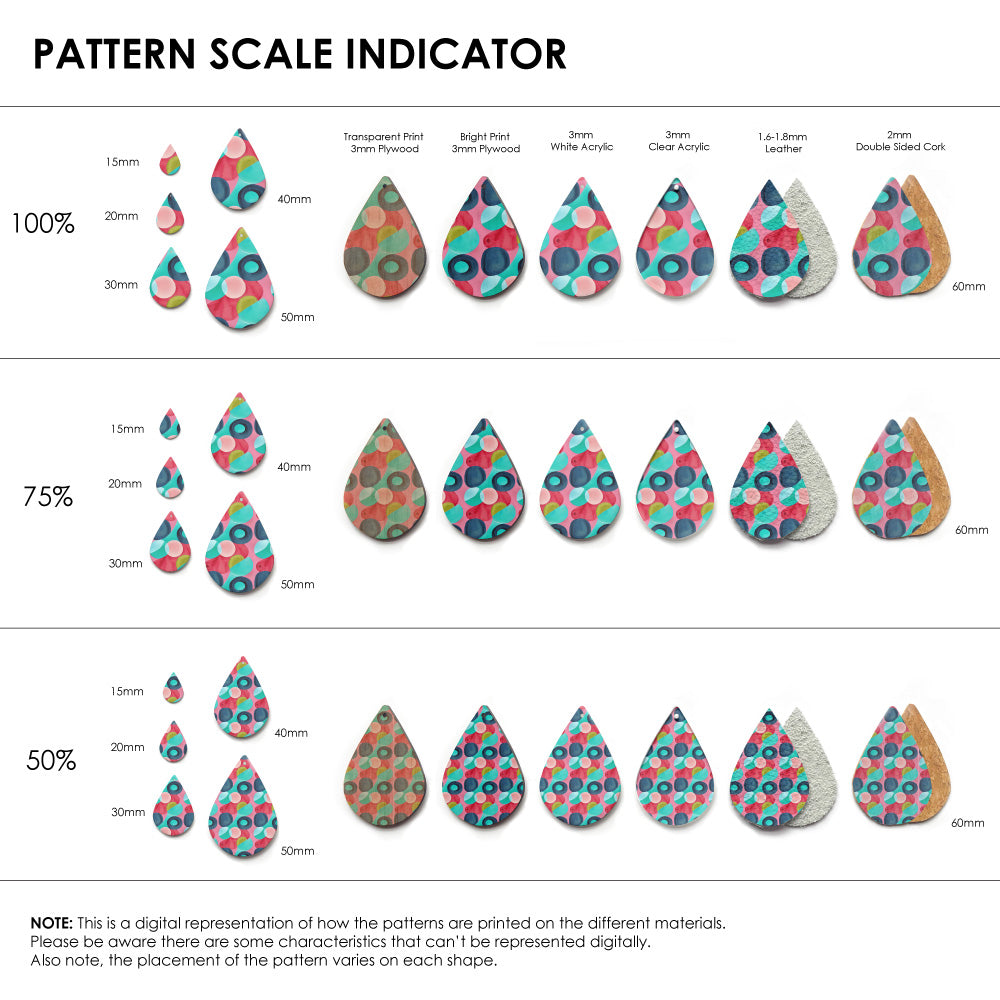 Our patterns can be printed onto Genuine Cowhide Leather, Double Sided Cork, Pine Plywood, White Acrylic or Clear Acrylic or Yupo Paper sheets or earring blanks for making your own earrings. Simply add your own embellishments and findings to make them truly your own.
