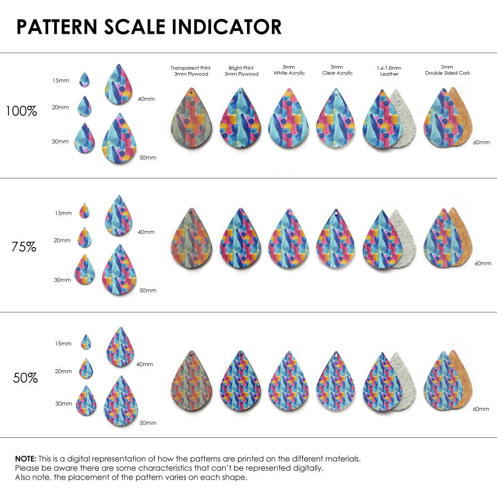 Our patterns can be printed onto Genuine Cowhide Leather, Double Sided Cork, Pine Plywood, White Acrylic or Clear Acrylic or Yupo Paper sheets or earring blanks for making your own earrings. Simply add your own embellishments and findings to make them truly your own.