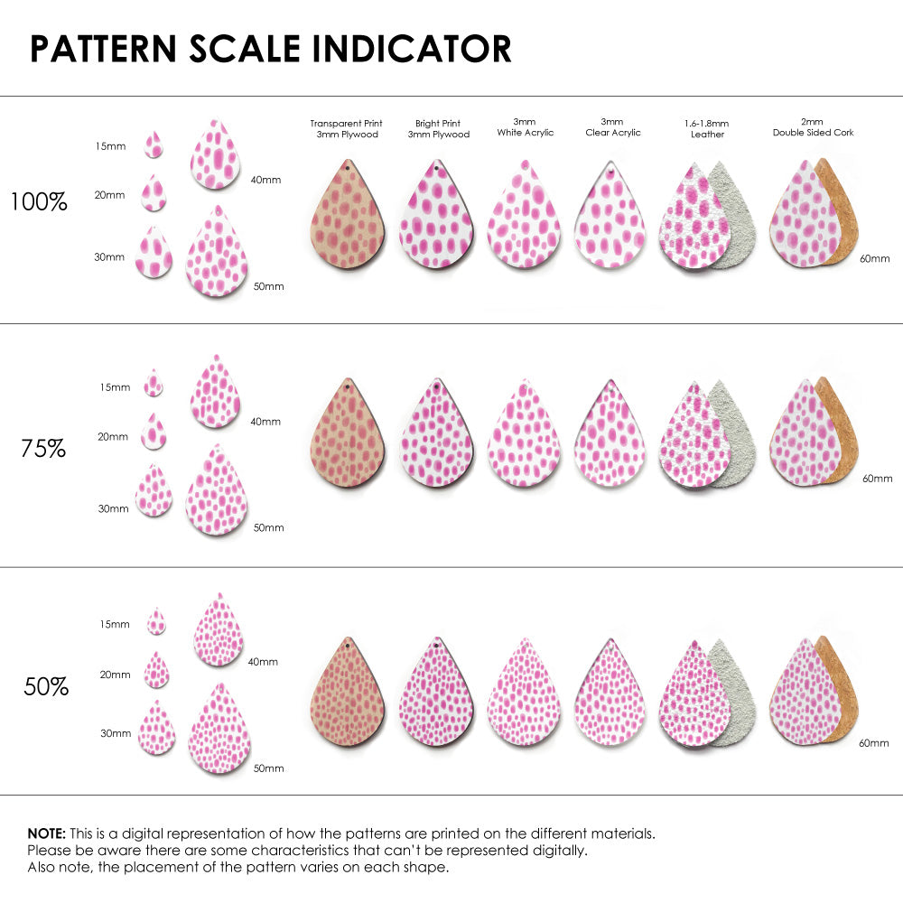 Our patterns can be printed onto Genuine Cowhide Leather, Double Sided Cork, Pine Plywood, White Acrylic or Clear Acrylic or Yupo Paper sheets or earring blanks for making your own earrings. Simply add your own embellishments and findings to make them truly your own.