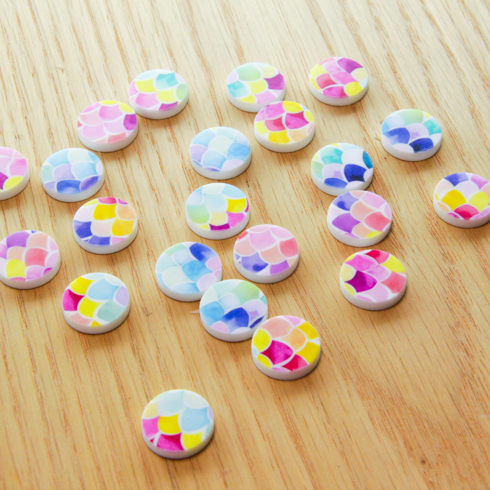 White Acrylic - 15mm Circle- Studs - Watercolour - 17